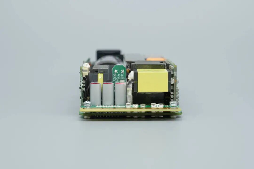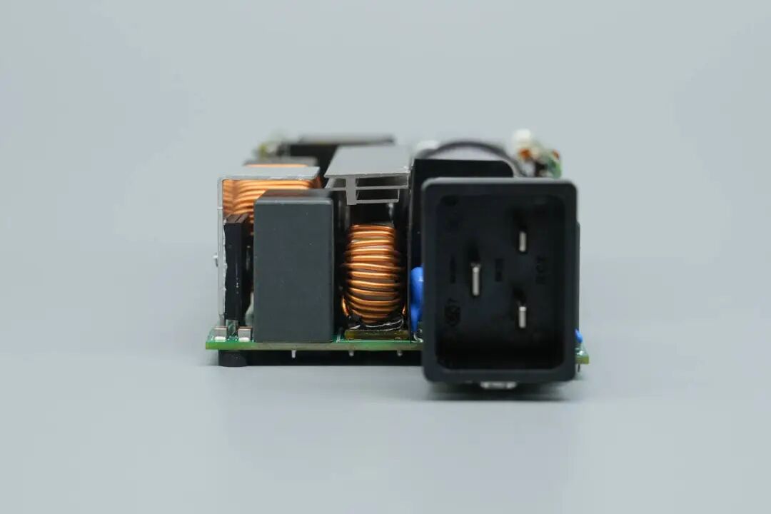 PCBA模块侧面设有整流桥,PFC升压电感,谐振电感和同步整流小板。
