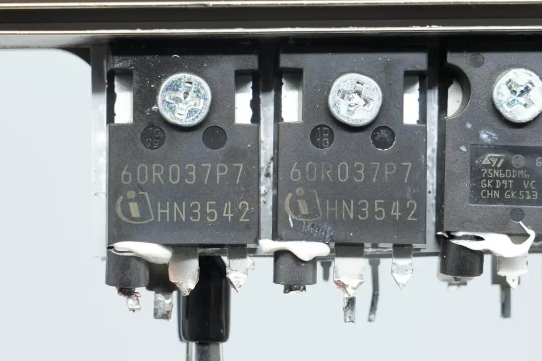 PFC开关管来自英飞凌,型号IPW60R037P7,为CoolMOS P7系列,NMOS,耐压650V,导阻37mΩ,采用TO 247-3封装。