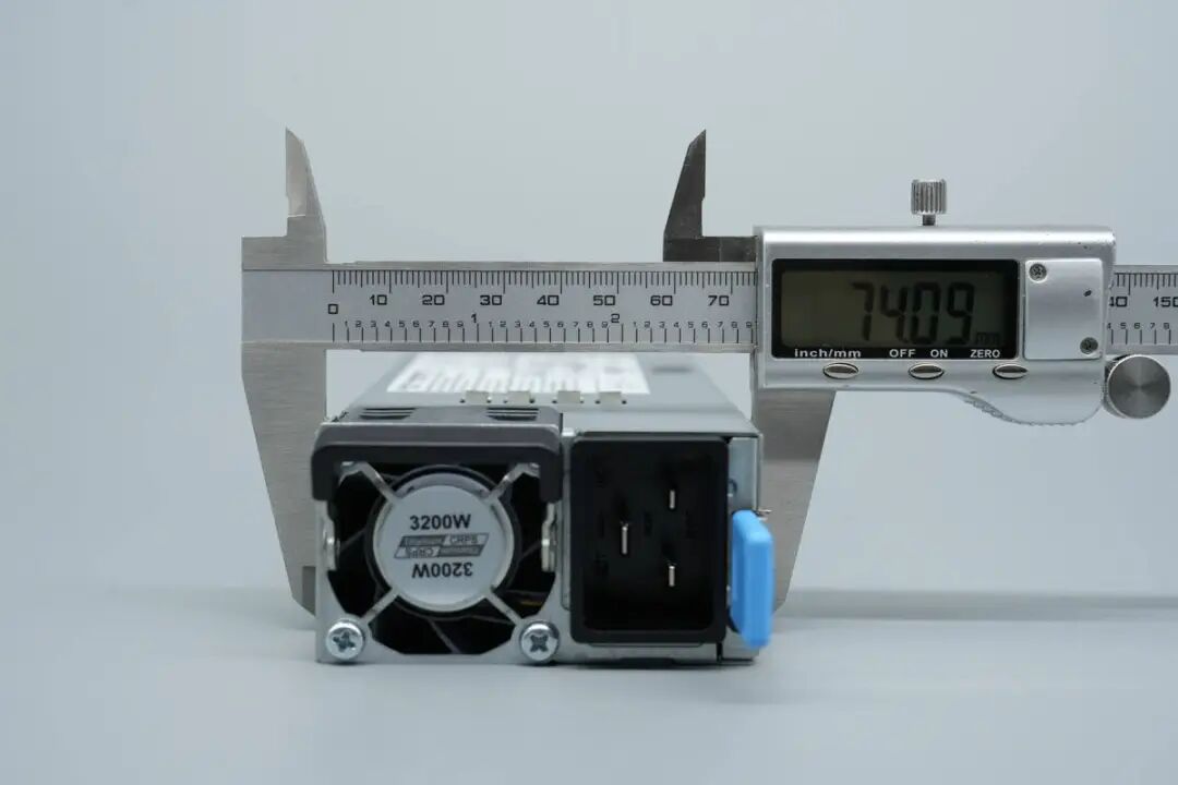 奥海科技这款服务器电源型号为AH-CRPS3200A1A,支持100-240V交流输入和240V直流输入,电源额定输出电压为12V,输出电流262.3A,额定输出功率3200W。待机电源输出电压为12V,输出电流2.1A。电源内部设有散热风扇,从直流输出端吸入空气,交流输入端吹出散热。