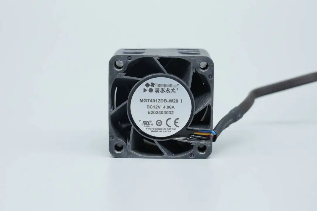 散热风扇来自广泰永立,型号MGT4012DB-W28,规格为12V 4A,并配有静叶片。