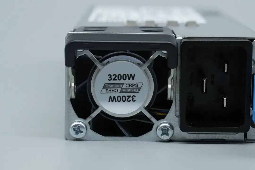 散热风扇设有防护板,标注Titanium和3200W输出功率。