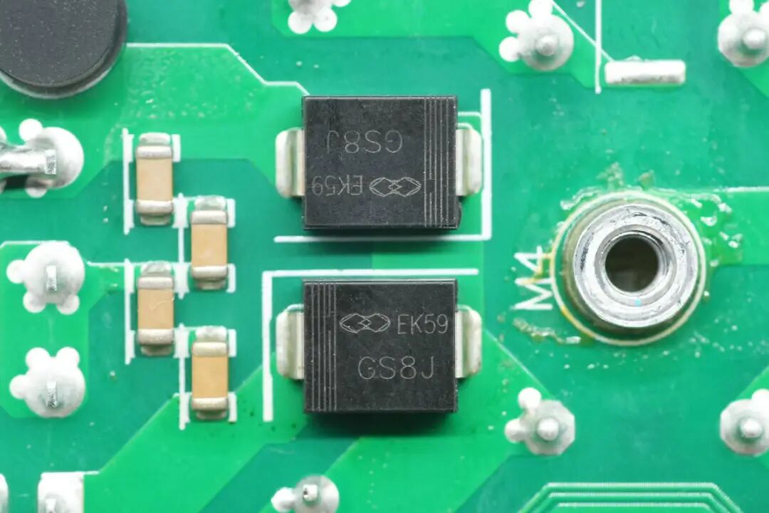 整流二极管来自海湾电子,型号GS8J,规格为600V 8A,采用SMC封装。