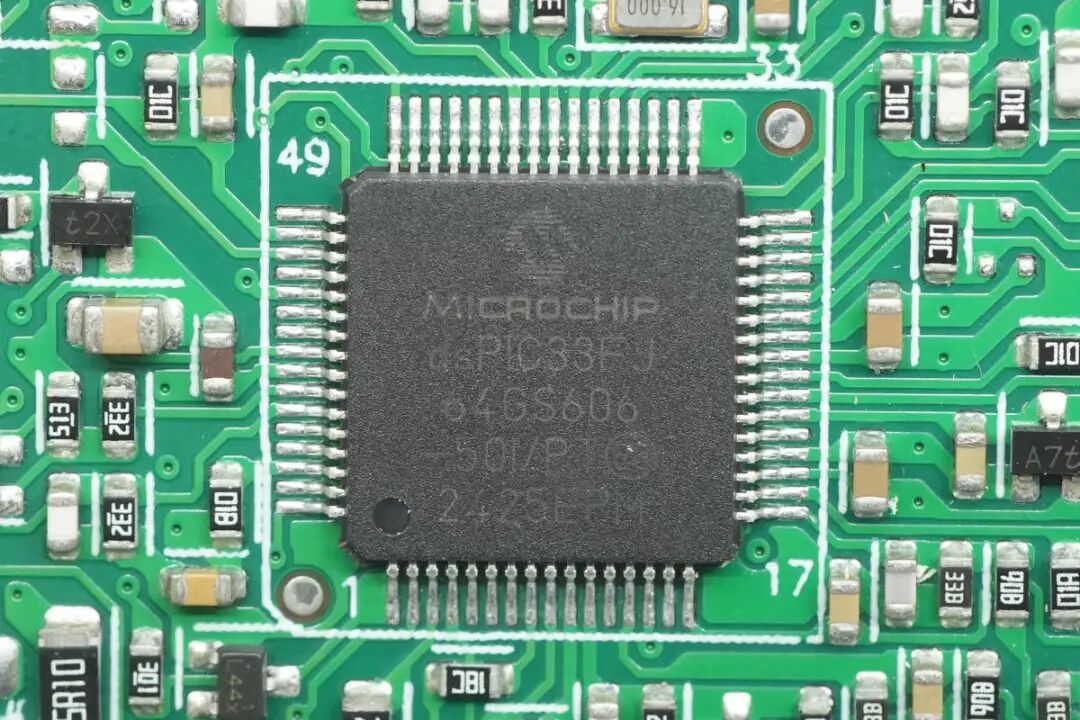 PFC控制器来自微芯科技,内置16位DSPIC33F CPU,内置64KB FLASH和9KB RAM,用于开关电源和同步整流控制,采用TQFP64封装。