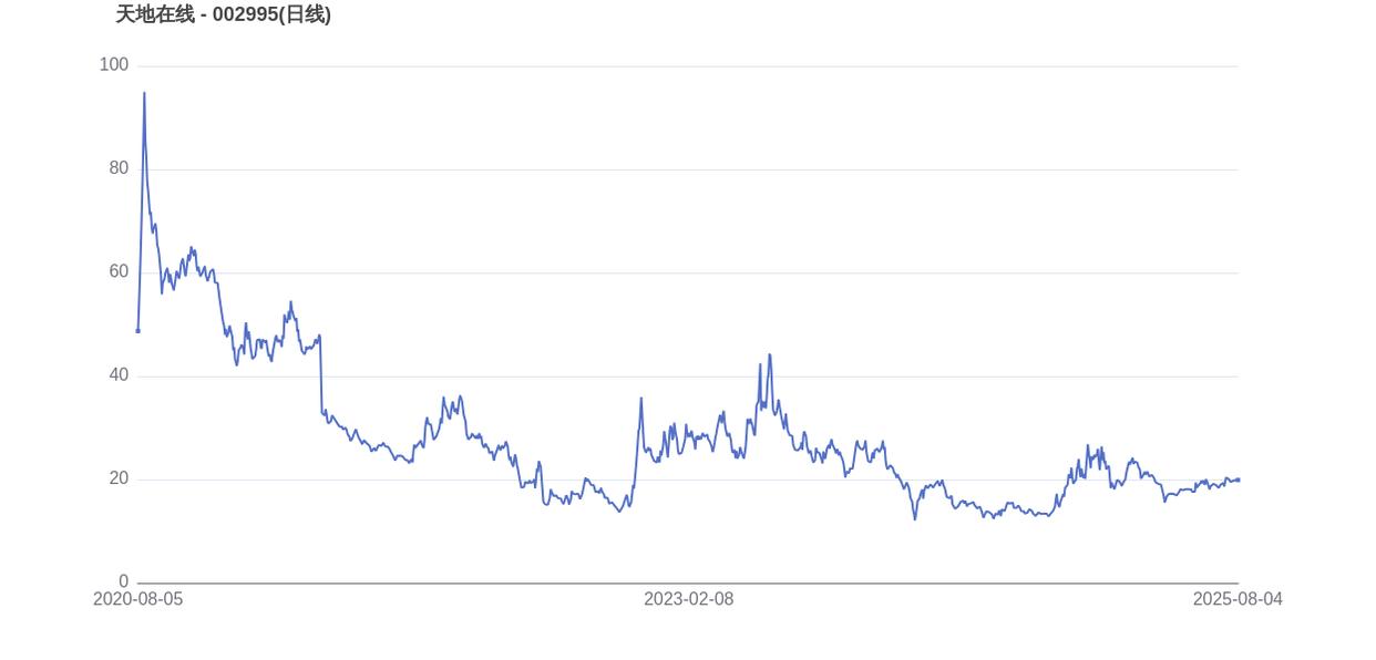 天地在线自2020年8月5日上市至今,已迎来5周年。从上市首日收盘价为48.73元、市值31.51亿元,到如今市值达到35.35亿元。