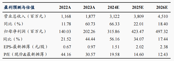 公司装备制造业务订单持续增长,汽零业务规模效应不断凸显,产能扩张配合订单增长释放,公司业绩有望进一步提升。我们上调2024-2025年归母净利润预测至3.16/4.23亿元(原为3.15/4.22亿元),同比分别+56%/+34%,我们预测2026年公司归母净利润为5.0亿元,同比+17%,对应PE分别为20/15/12倍,维持“买入”评级。