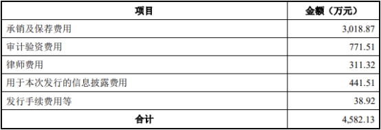 优彩资源的发行费用总额为4582.13万元,其中保荐机构兴业证券股份有限公司获得承销及保荐费用3018.87万元。