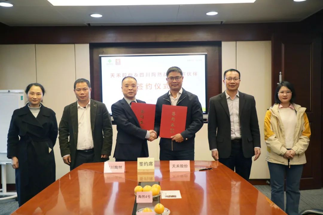 12月30日下午,广东天禾农资股份有限公司(下称“天禾股份”)和四川陶然柑桔新品种研究有限公司(下称“四川陶然柑桔研究公司”)签订战略合作协议。天禾股份党委书记、总经理姚伟英,副总经理崔永涛;四川陶然柑桔研究公司总经理邱志刚、总经理助理巫小燕,以及广东天禾良种苗木繁育有限公司总经理徐明强等共同出席了本次签约仪式。