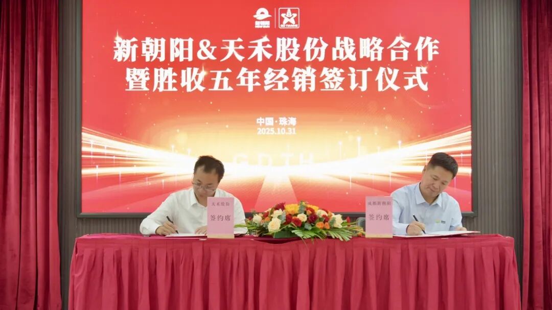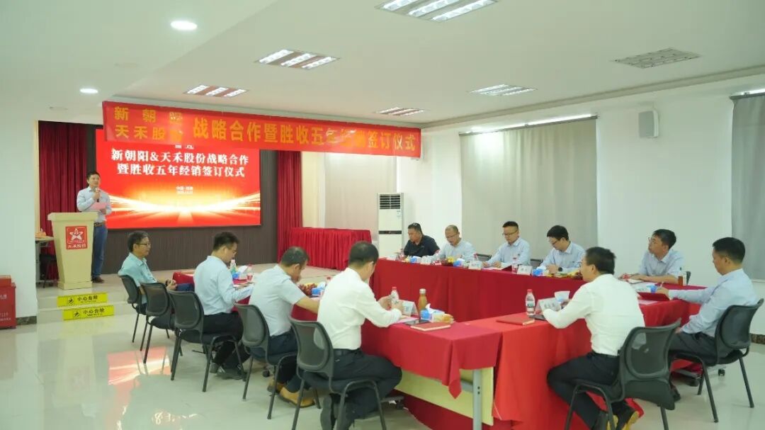 日前,广东天禾农资股份有限公司(下称“天禾股份”)与成都新朝阳作物科学股份有限公司(下称“新朝阳公司”)在天禾股份珠海工厂举行战略合作暨五年经销协议签订仪式。新朝阳公司董事长何其明、全球商务运营高级副总裁刘成涛,天禾股份副总经理崔永涛、农业化工部总经理张万里等出席活动。