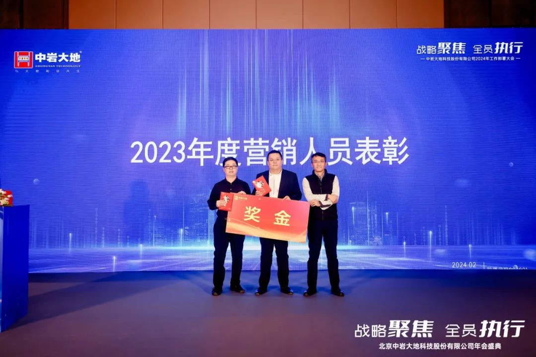 2024年2月3日,北京中岩大地科技股份有限公司(以下简称:中岩大地)在北京成功举办了主题为“战略聚焦·全员执行”的年会盛典。公司员工线上线下汇聚一堂,共同听取了2023年度公司情况报告 2024年工作部署,并一同见证了2023年度优秀员工和团队的表彰仪式。