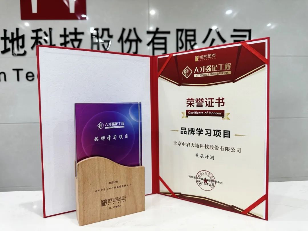 日前,在新华报业传媒集团《培训》杂志举办的“人才强企工程·2023年度企业培训行业年度评优”活动中,中岩大地星辰计划人才培养项目荣获“品牌学习项目”奖!