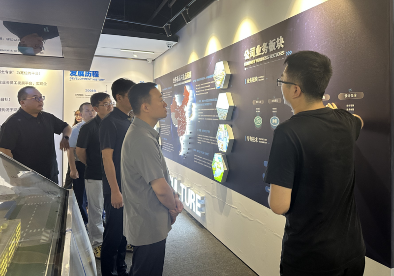 中核勘察考察团在中岩大地相关负责人的陪同下参观了科技展厅。
