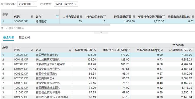 此外,截至2024年底,16家基金公司旗下共39只基金持有稳健医疗,持股总量1408.38万股,占流通股比8.02%,持股总市值5.93亿元。其中,富国基金、民生加银基金、浦银安盛基金、信达澳亚基金旗下产品均持有超过百万股。
