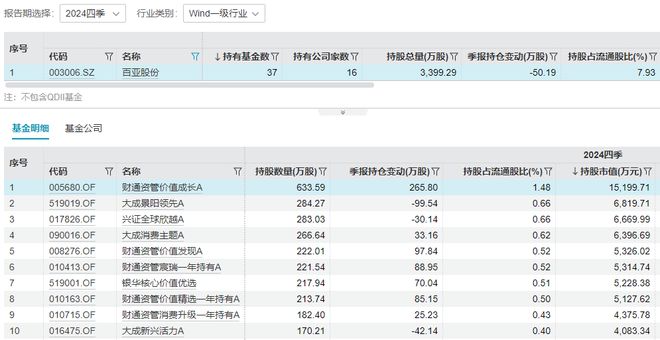 红星资本局注意到,作为上市公司,百亚股份、稳健医疗位居部分公募基金的前十大重仓股。Wind数据显示,截至2024年底,16家基金公司旗下共37只基金持有百亚股份,持股总量3399.29万股,占流通股比7.93%,持股总市值8.14亿元。
