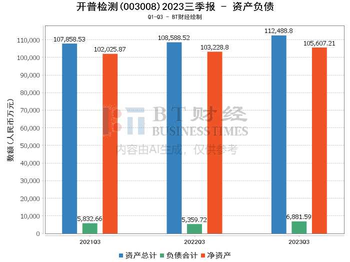 在资产负债方面,开普检测截至2023年三季度末的总资产为11.25亿元,较上年度末的11.4亿元略有下降。负债合计为6881.59万元,较上年度末的9033.09万元减少,净资产则从上年度末的10.49亿元增长至10.56亿元。资产负债率从上年度末的7.93%降至6.12%,显示出公司的财务结构更为稳健。