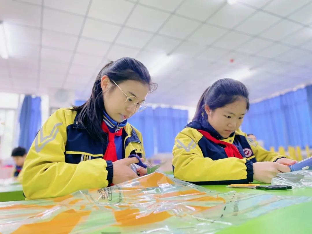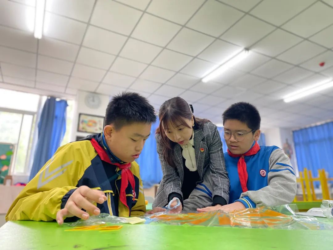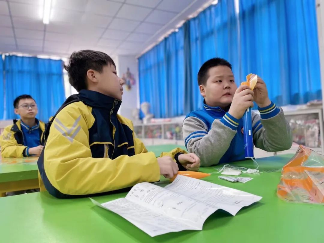 学生们在志愿者的指导下,参与了小火箭模型的制作。大家两人一小队,量尺寸、裁剪、粘贴,组装模型火箭,忙的不亦乐乎,在动手实践的过程中,对火箭的结构和发射原理认识的更加深入。