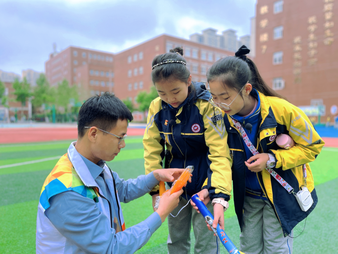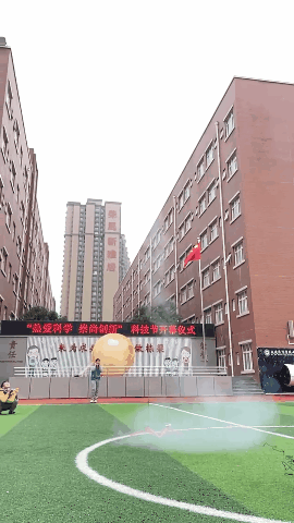 紧接着,学生们在志愿者们的陪同下进行了火箭放飞,随着“三、二、一,发射!”的口令响起,一个个模型火箭腾空而起,飞至预定高度,开伞,缓缓降落,赢得了学生们的阵阵喝彩。活动现场表演十分精彩,吸引了很多师生前来观摩,共同感受航天科技的魅力。