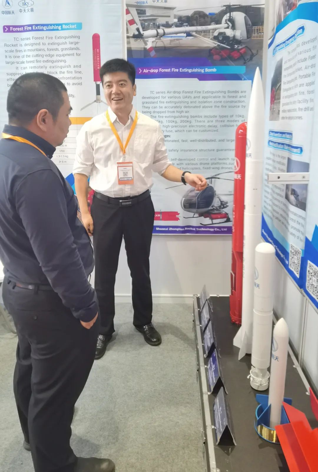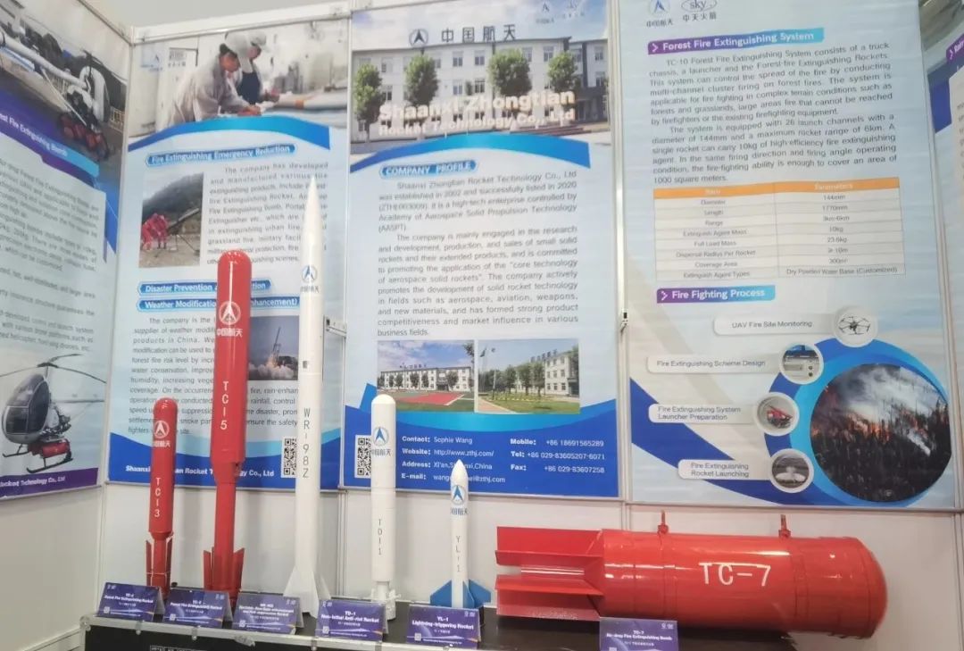 中天火箭公司携人工影响天气系列产品、消防灭火系列产品及增雨消霾无人机装备首次出国展览,集中展示了公司在防灾减灾、消防应急救援领域的技术实力。