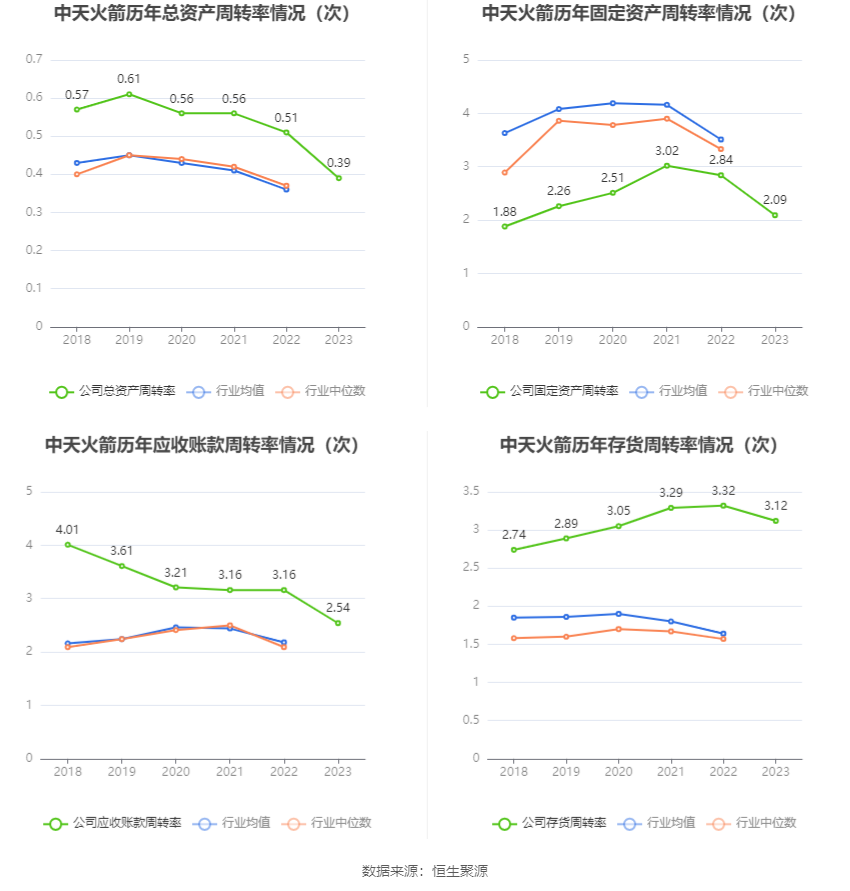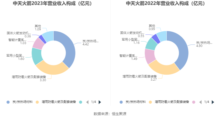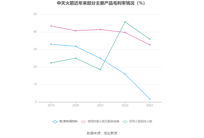 分产品看,炭/炭热场材料、增雨防雹火箭及配套装备、军用小型固体火箭2023年毛利率分别为1.89%、32.70%、35.97%。