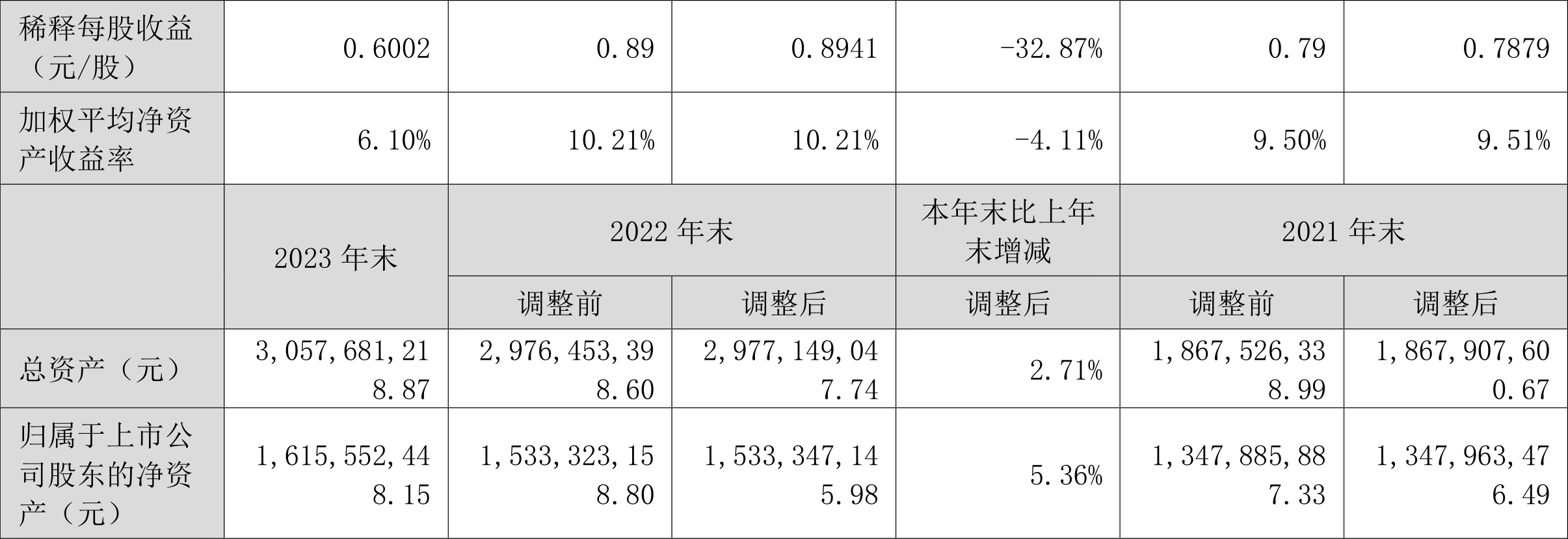 数据显示,2023年公司加权平均净资产收益率为6.10%,较上年同期下降4.11个百分点;公司2023年投入资本回报率为4.20%,较上年同期下降3.86个百分点。