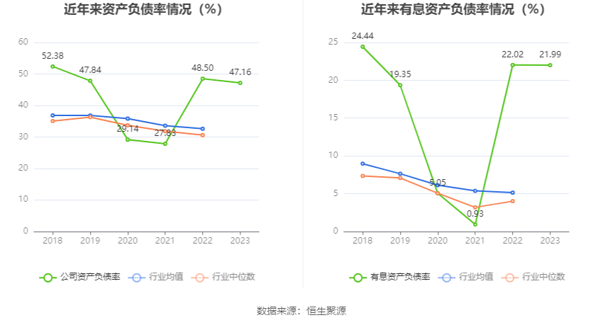 在偿债能力方面,公司2023年年末资产负债率为47.16%,相比上年末下降1.34个百分点;有息资产负债率为21.99%,相比上年末下降0.03个百分点。