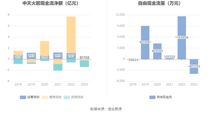 进一步统计发现,2023年公司自由现金流为-4015.52万元,上年同期为11639.04万元。