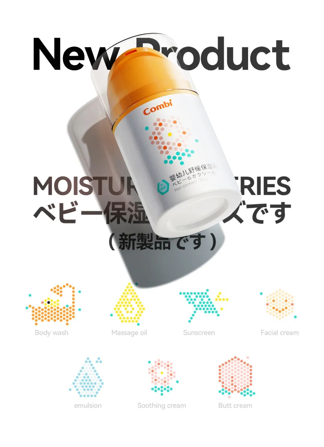 在“康贝品牌包装设计策划方案”中,大可营销将康贝品牌的核心元素与团队的创新理念进行了完美融合:康贝婴儿护理包装系列产品的核心成分是聚谷氨酸,它是谷氨酸的一个结构单元,个体结构的形状为六边形。大可营销巧妙地将这些六边形图案组合起来,形成了一系列具有整体视觉概念的包装设计,不同的组合方式也向消费者一目了然地传达出产品的不同功效和使用场景。这种视觉概念的组合具有非常好的延展性,为客户和品牌的后续交流形成了强大的视觉记忆系统。