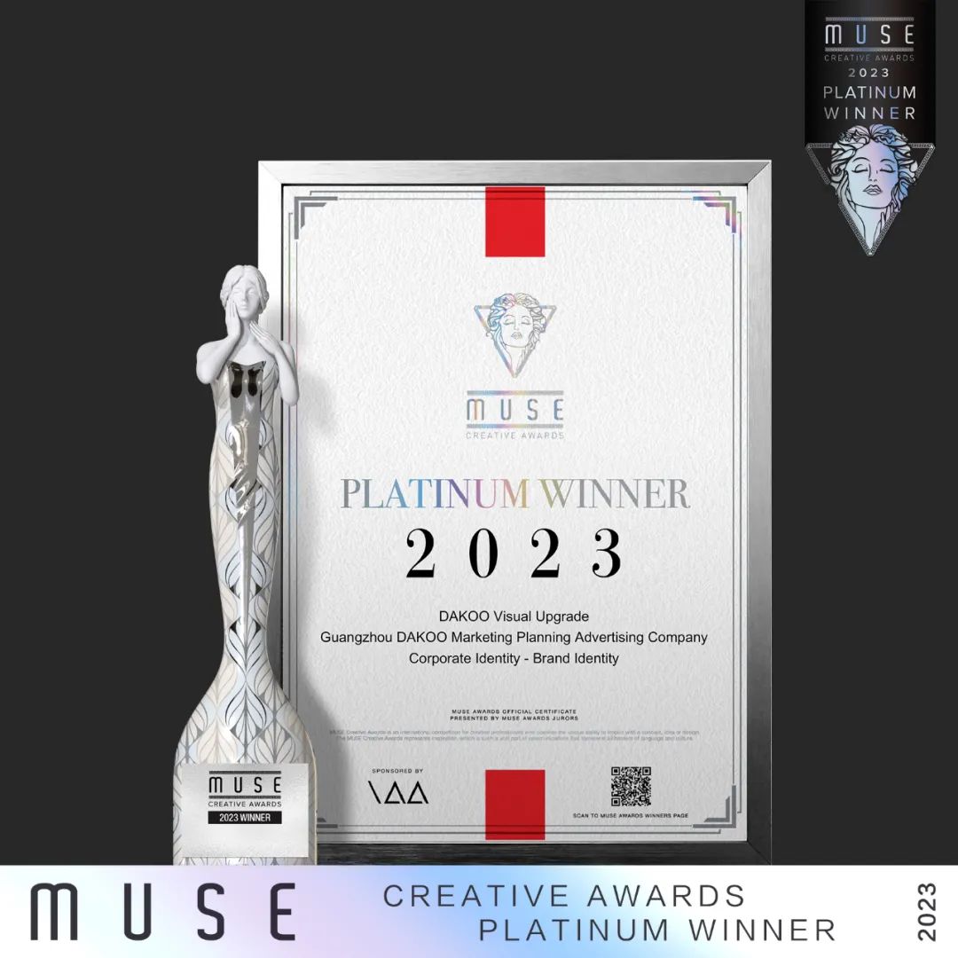 荣获MUSE缪斯设计铂金奖与金奖两项大奖,是大可营销在创新性、前沿性设计方面的又一次进阶,充分印证了大可的设计作品得到了国际设计评审的高度认可。
