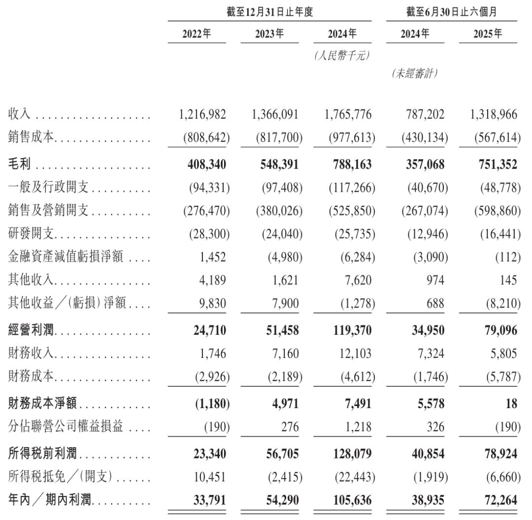若羽臣2025年上半年营收为13.19亿元,较上年同期的7.87亿元增长67.6%;毛利为7.51亿元,上年同期的毛利为3.57亿元;