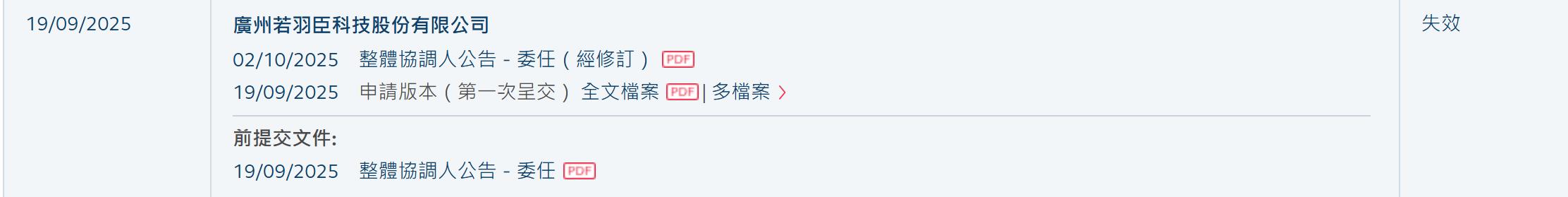 近日,港交所官网显示,广州若羽臣科技股份有限公司(下称“若羽臣”)于2025年9月19日所递交的港股招股书满6个月,于2026年3月19日“失效”。