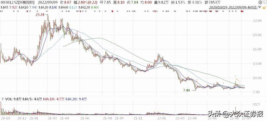 东鹏控股首发价格为11.35元/股,2021年3月2日盘中创上市以来最高价23.24元/股(前复权,下同)后,股价一路震荡下跌,于今年3月份“破发”,更是一度在今年4月27日刷新低——7.4元/股。截至9日收盘,股价报8.07元/股。