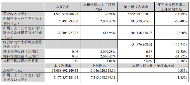 整体来看,今年前三季度,东鹏控股实现营业收入50.56亿元,同比减少11.89%;归母净利润1.94亿元,同比减少50.4%。