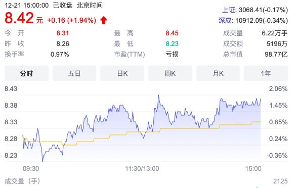 ▲东鹏控股21日收报8.42元/股,总市值98.77亿元