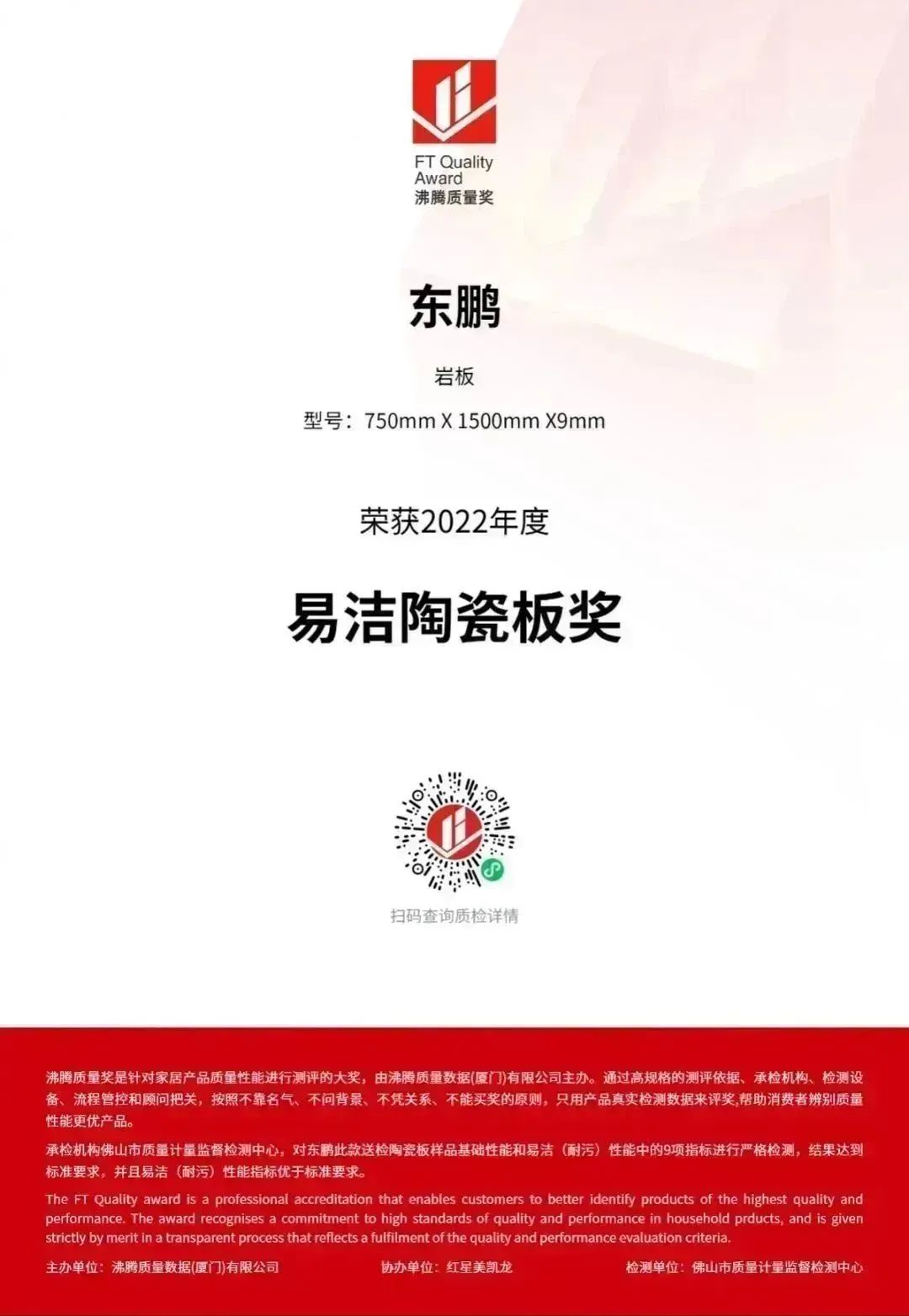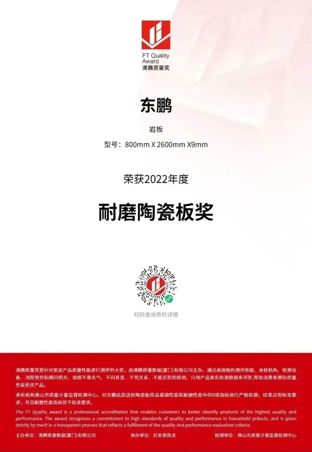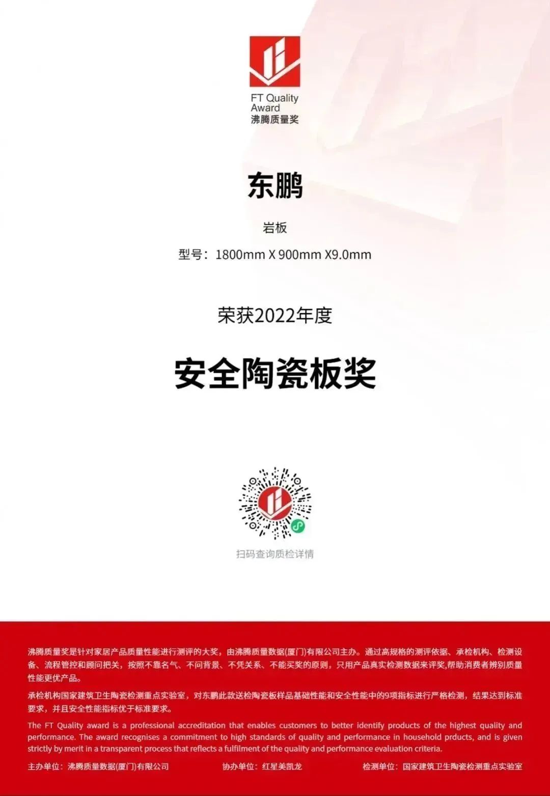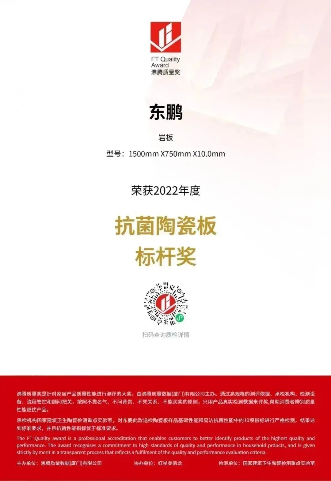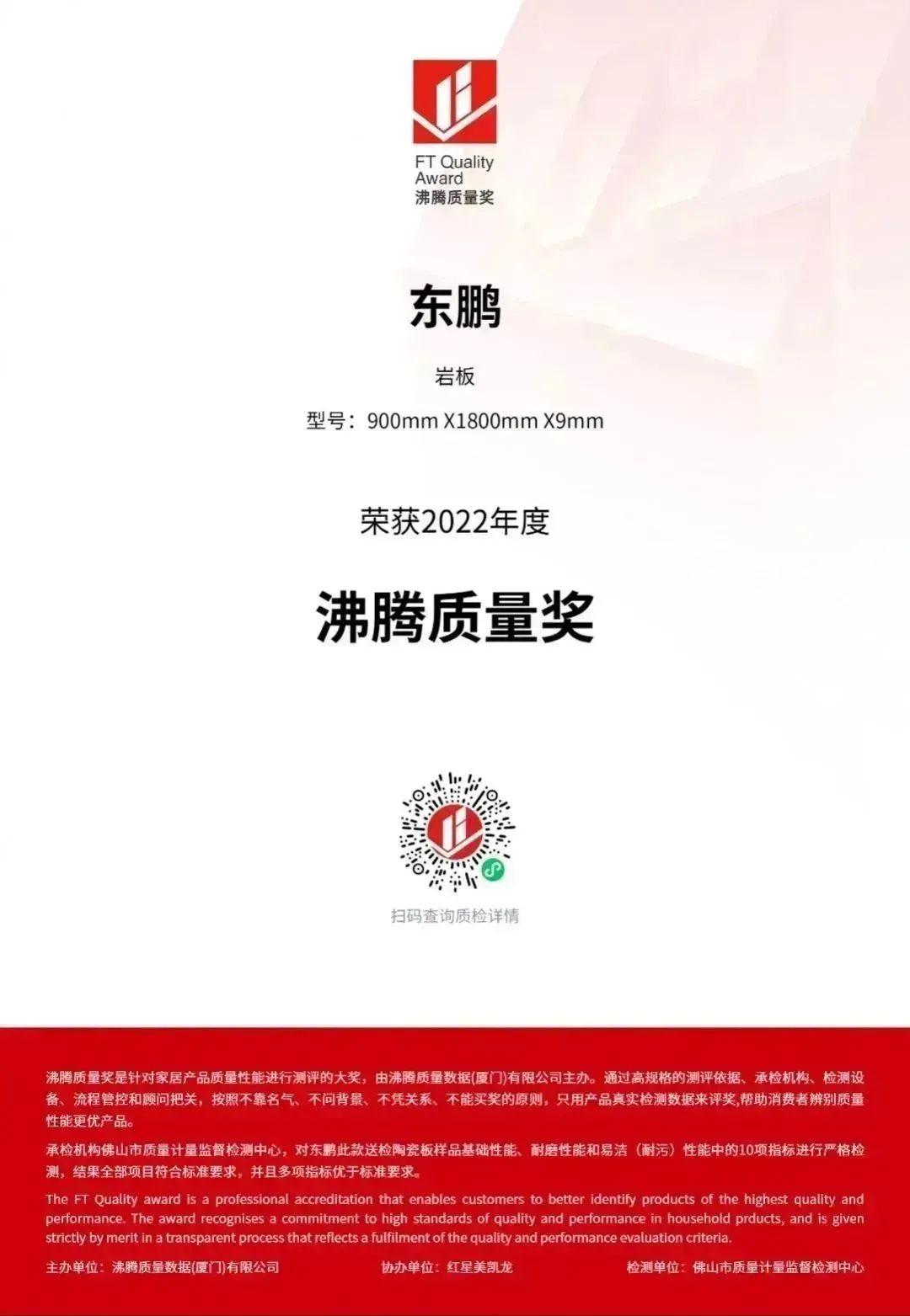东鹏岩板沸腾质量奖荣誉(左右滑动查看更多)