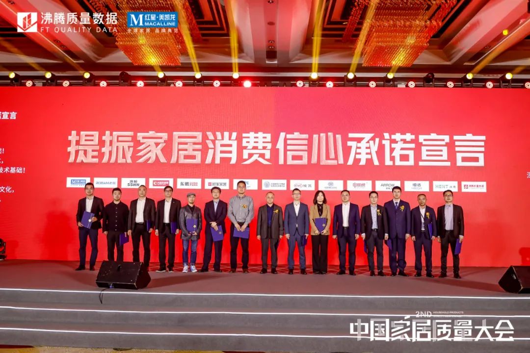 本次家居质量大会上,特设置了“提振家居消费信心承诺宣言”环节。特邀东鹏集团副总裁刘勋功以及来自标准、质检、认证的专家/家居名企高层领导、媒体代表,共同上台作出庄严承诺,全力携手提振家居消费信心。