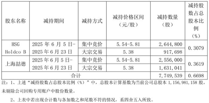 6月24日,东鹏控股对上述股东减持进展进行披露。据悉,今年6月5日至6月23日,HSG Holdco B、上海喆德通过集中竞价、大宗交易方式合计减持公司股份约774.95万股,占公司目前总股本的0.6698%。本次减持后,两股东合计持股比例降至5%(剔除回购账户前),首次低于5%,权益变动跨越1%。而此前,上海喆德已多次减持公司股份。
