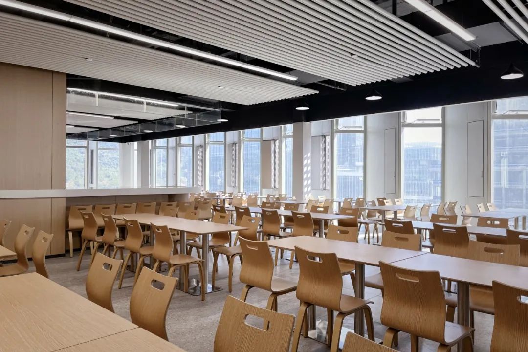 立体围院式布局,串联起风格鲜明、各具特色的中庭与侧庭等公共空间,打造通透明亮、自然通风的室内环境。多层观景平台之上,立体化园林错落有致,为员工构筑一方休憩放松、交流互动的共享天地,实现了建筑与自然、人文的和谐交融。