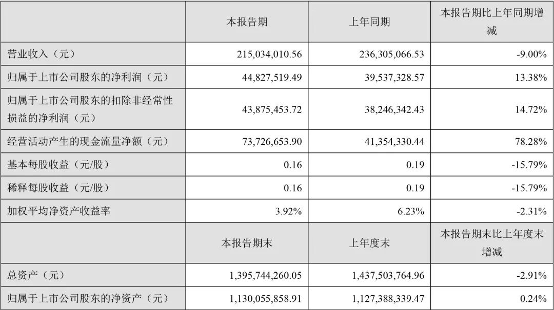 8月23日,日久光电发布2021年半年报,报告显示,日久光电2021年上半年实现营业收入2.15亿元,同比下降9%;归属于上市公司股东的净利润4482.75万元,同比增长13.38%。