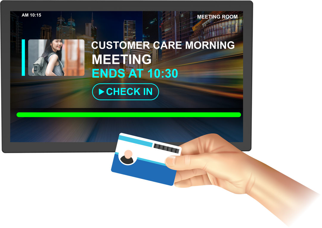 日程表显示功能。通过手机扫描,能够读取会议室预定信息、获取门禁授权、会议签到等功能。适用场景:会议室、活动室、教室。