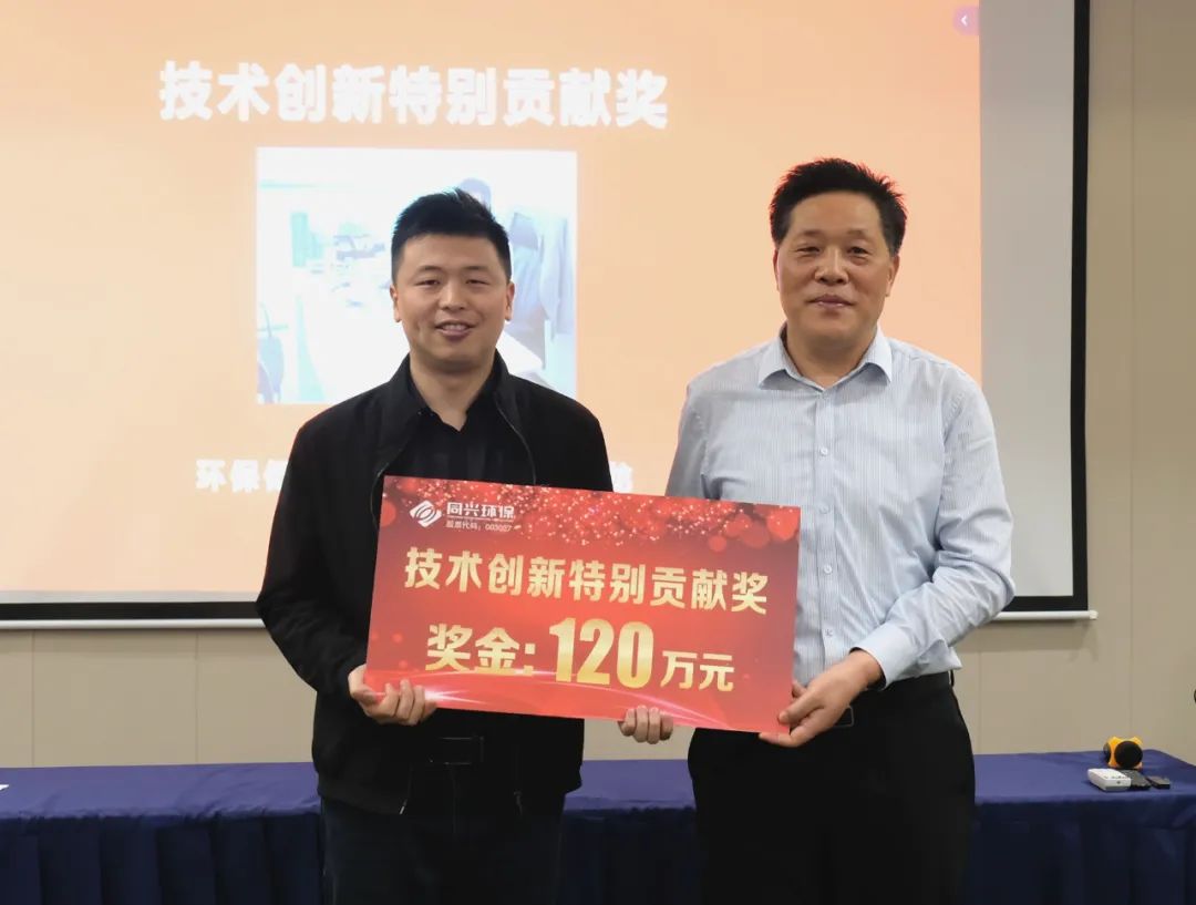 技术创新是推动同兴环保持续发展的核心动力,为表彰工程事业部环保低碳研究院技术总监苏龙龙在脱硫脱硝研发领域所做的重大贡献,公司授予苏龙龙技术创新特别贡献奖,奖金120万元。