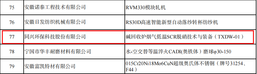 近日,安徽省工信厅公布了2024年度安徽工业精品名单,同兴科技“碱回收炉烟气低温SCR脱硝技术与装备”名列其中。