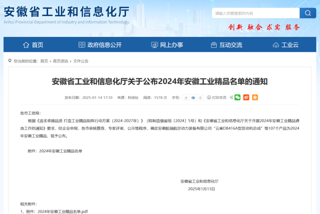 安徽工业精品是指具有自主知识产权、主要技术性能指标处于国内同类产品领先水平、质量水平优、用户美誉度高、经济效益好、市场前景广阔的产品,每年评选一次。