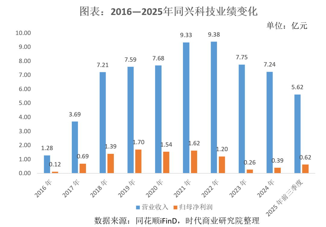 2019年以来, 同兴科技 的盈利能力更是持续下滑,归母净利润从2019年的1.7亿元下滑至2024年的3903.53万元。这一业绩颓势背后,是业务结构本身固有的局限性。