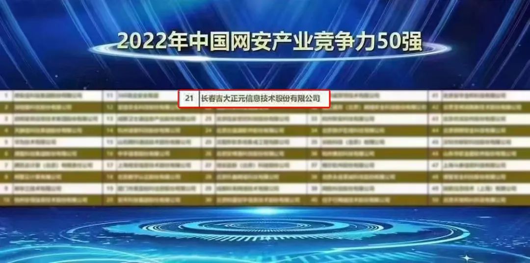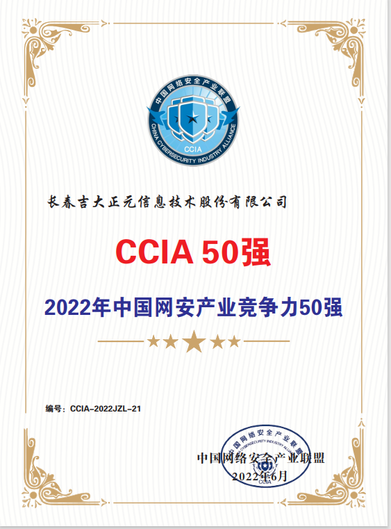 6月23日,中国网络安全产业联盟(CCIA)发布2022年中国网络安全市场与企业竞争力分析报告。长春吉大正元信息技术股份有限公司(简称:吉大正元?股票代码:003029)凭借创新技术产品、丰富行业方案、优质服务保障以及2021年度突出的整体业绩表现,再次成功入选2022年中国网安产业竞争力50强。
