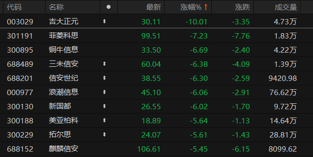 网络安全概念股盘中持续走弱 吉大正元触及跌停