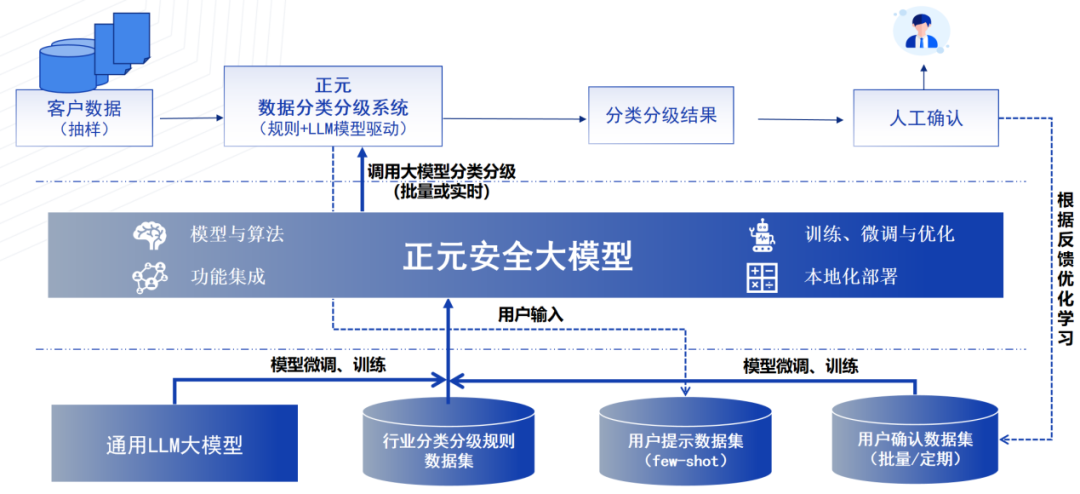 为企业数据识别提供专家经验与工作模型交互界面,支持零样本和小样本学习,提升敏感数据识别率和数据分类分级准确率。