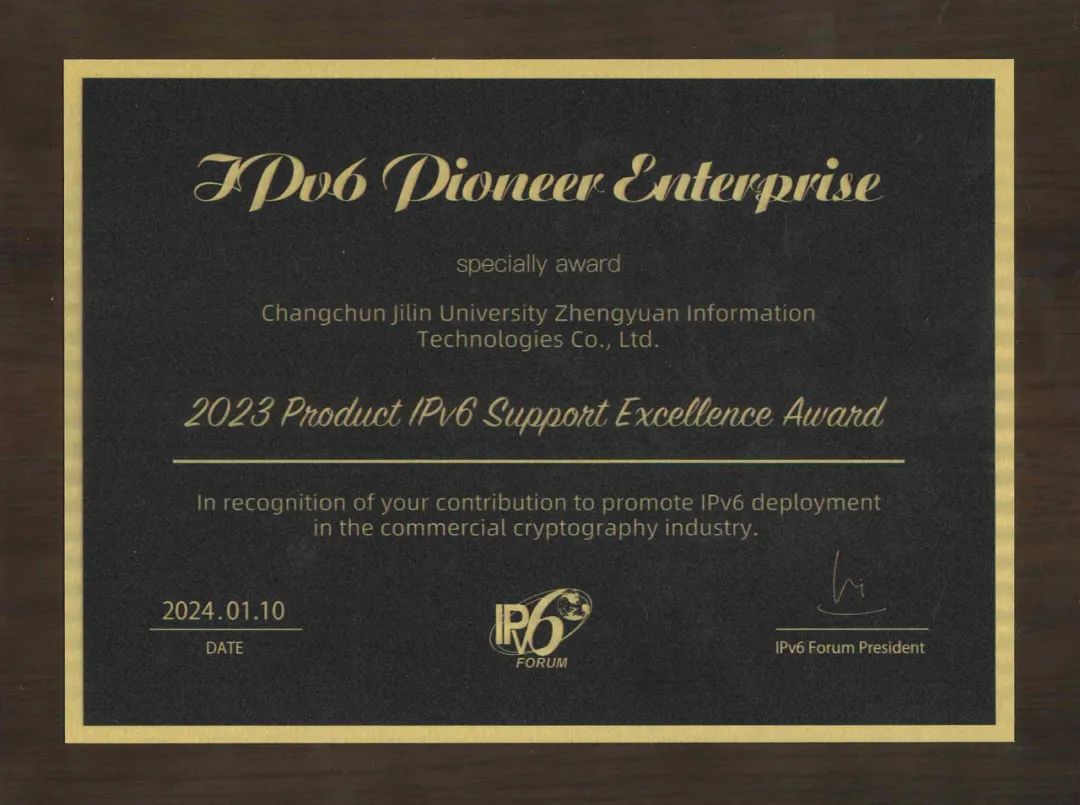 近日,长春吉大正元信息技术股份有限公司(简称:吉大正元股票代码:003029)获得由全球IPv6论坛组织颁发的“IPv6先锋企业- IPv6支持度优秀奖”,用以表彰公司在多领域、多产业推进IPv6部署及应用方面做出积极贡献。
