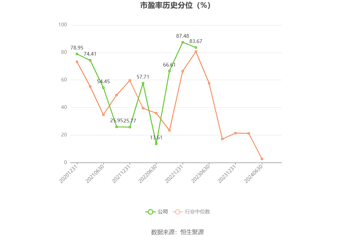 市盈率为负时,不显示当期分位数,会导致折线图中断。