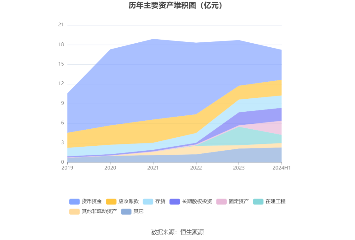 资产重大变化方面,截至2024年上半年末,公司固定资产较上年末增加914.40%,占公司总资产比重上升11.37个百分点;货币资金较上年末减少34.31%,占公司总资产比重下降10.65个百分点;在建工程较上年末减少56.12%,占公司总资产比重下降7.96个百分点;应收账款较上年末增加13.53%,占公司总资产比重上升2.65个百分点。