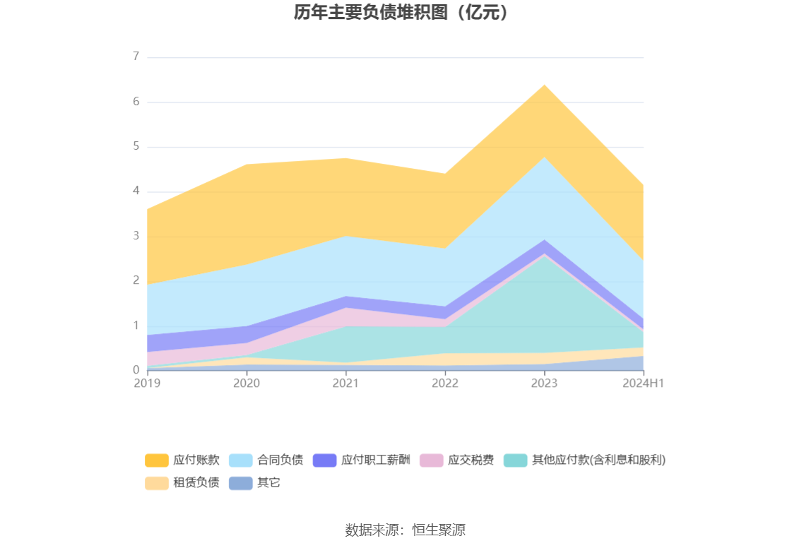 负债重大变化方面,截至2024年上半年末,公司其他应付款(含利息和股利)较上年末减少84.32%,占公司总资产比重下降9.56个百分点;合同负债较上年末减少29.60%,占公司总资产比重下降2.31个百分点;应付职工薪酬较上年末减少23.71%,占公司总资产比重下降0.29个百分点;应付账款较上年末增加4.04%,占公司总资产比重上升1.13个百分点。