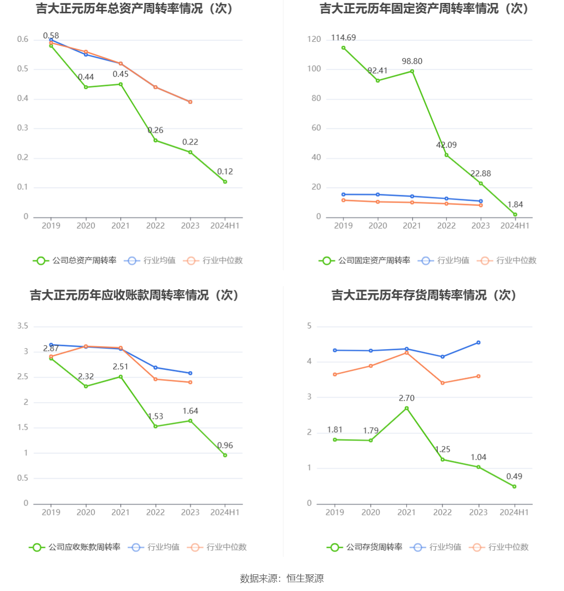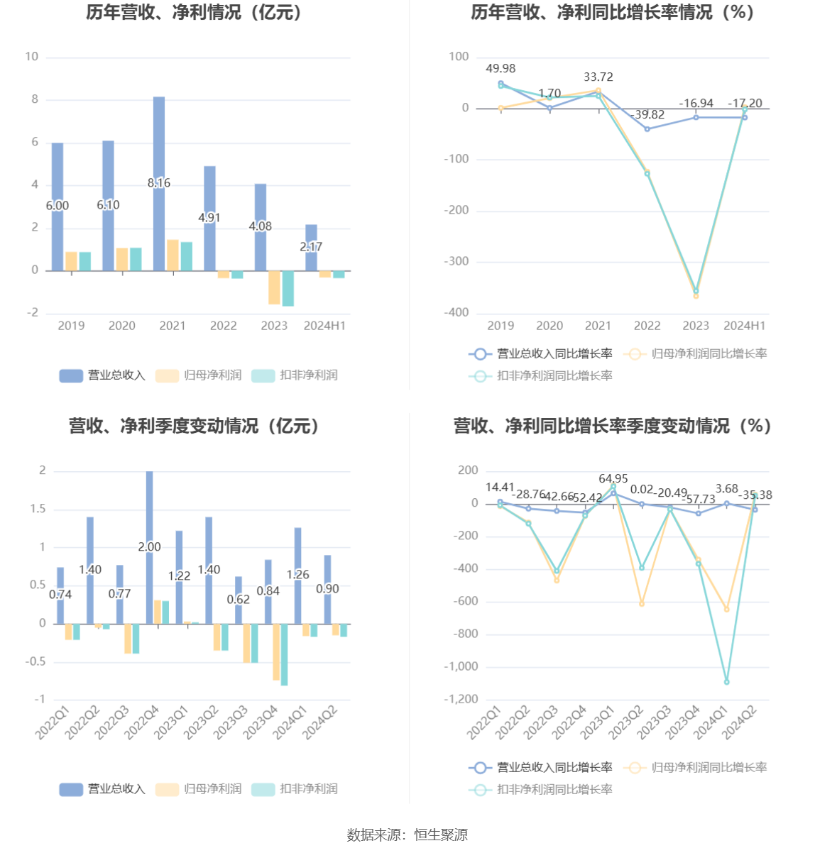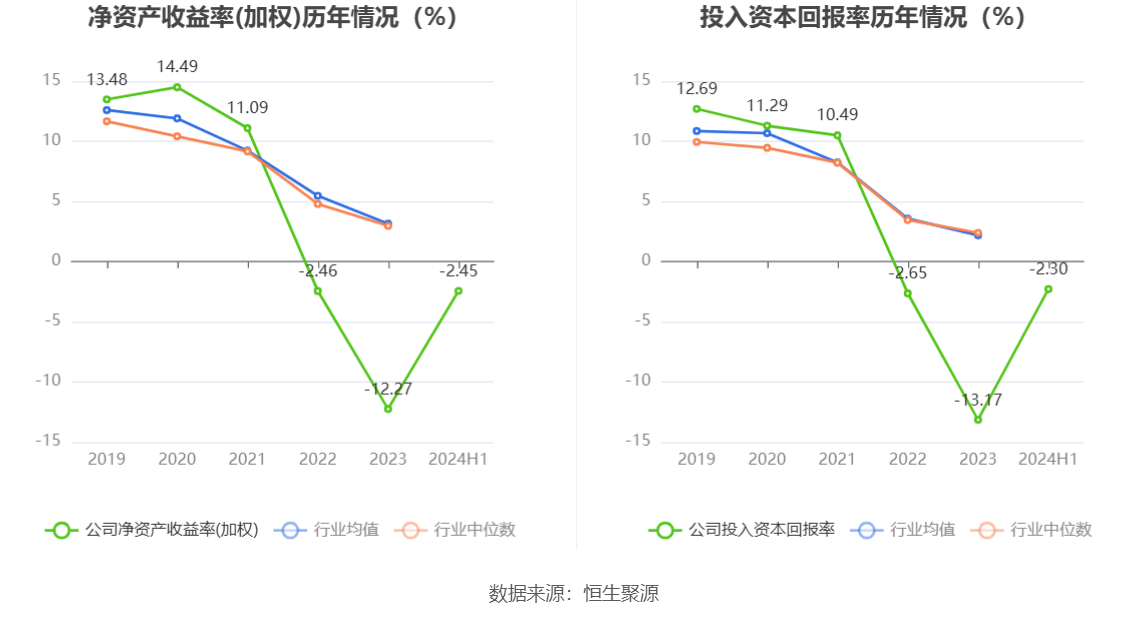 数据显示,2024年上半年公司加权平均净资产收益率为-2.45%,较上年同期下降0.05个百分点;公司2024年上半年投入资本回报率为-2.30%,较上年同期下降0.08个百分点。